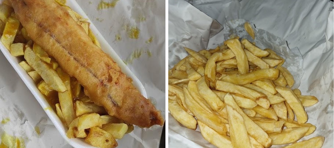 Popped in for a quick fish and chips on a Friday night, definitely popular as there was a reasonable queue. I ordered a small cod and chips, and two cans of Fanta lemon, which came to £11 which was very reasonable as the portion size was enough for two people. The cod was tasty and the batter was nice, and the chips were well portioned with some larger ones, and lots of little crispy ones which are my favourite